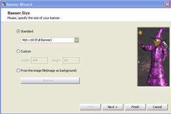Choose the banner size (Standard, custom, from the image file):