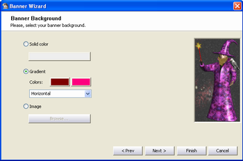 Choose the banner background (solid color, gradient, image):