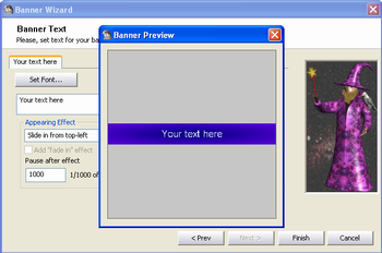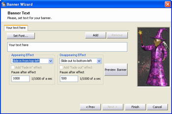 Choose the banner text and appearing/disappearing effects: